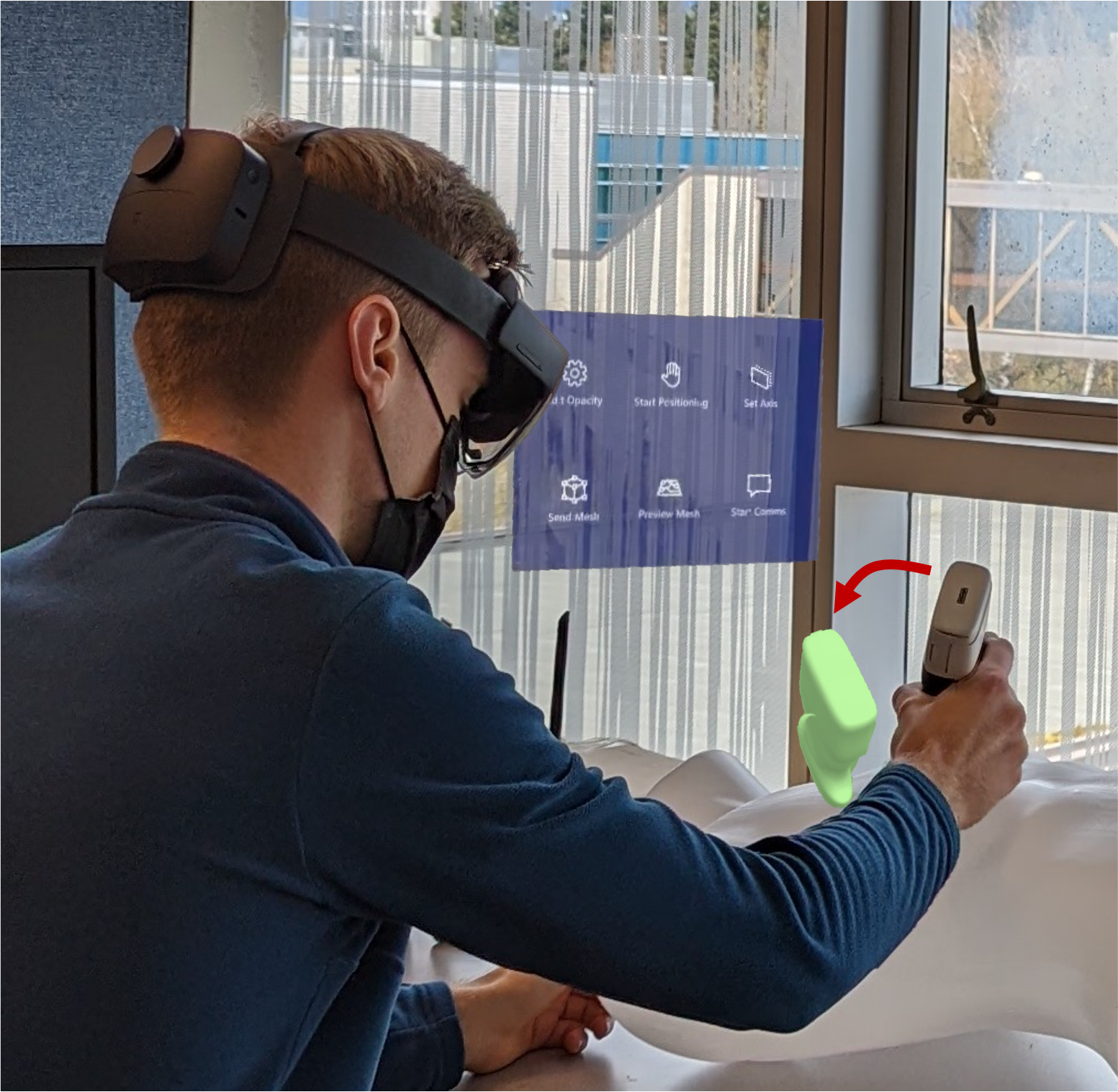 We use a patent-pending combination of real-time hand-over-hand augmented reality guidance with high-speed communication and force feedback to give the expert the sensation of performing a scan in person while in fact they are guiding the motions of a novice person in a remote location.